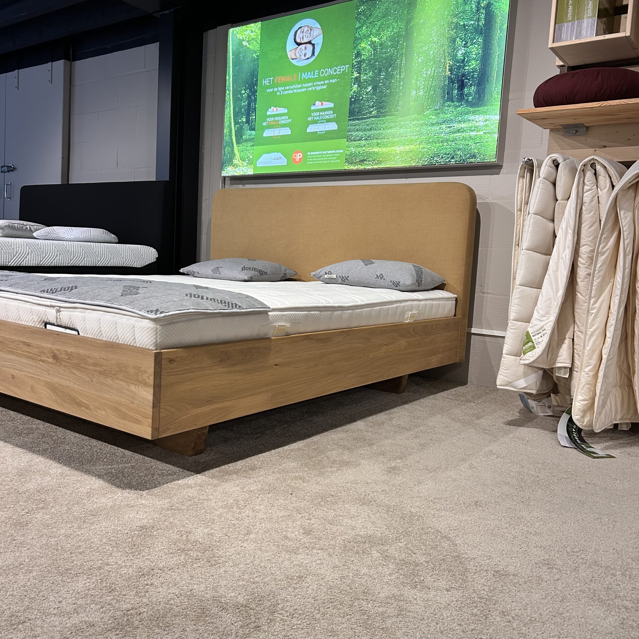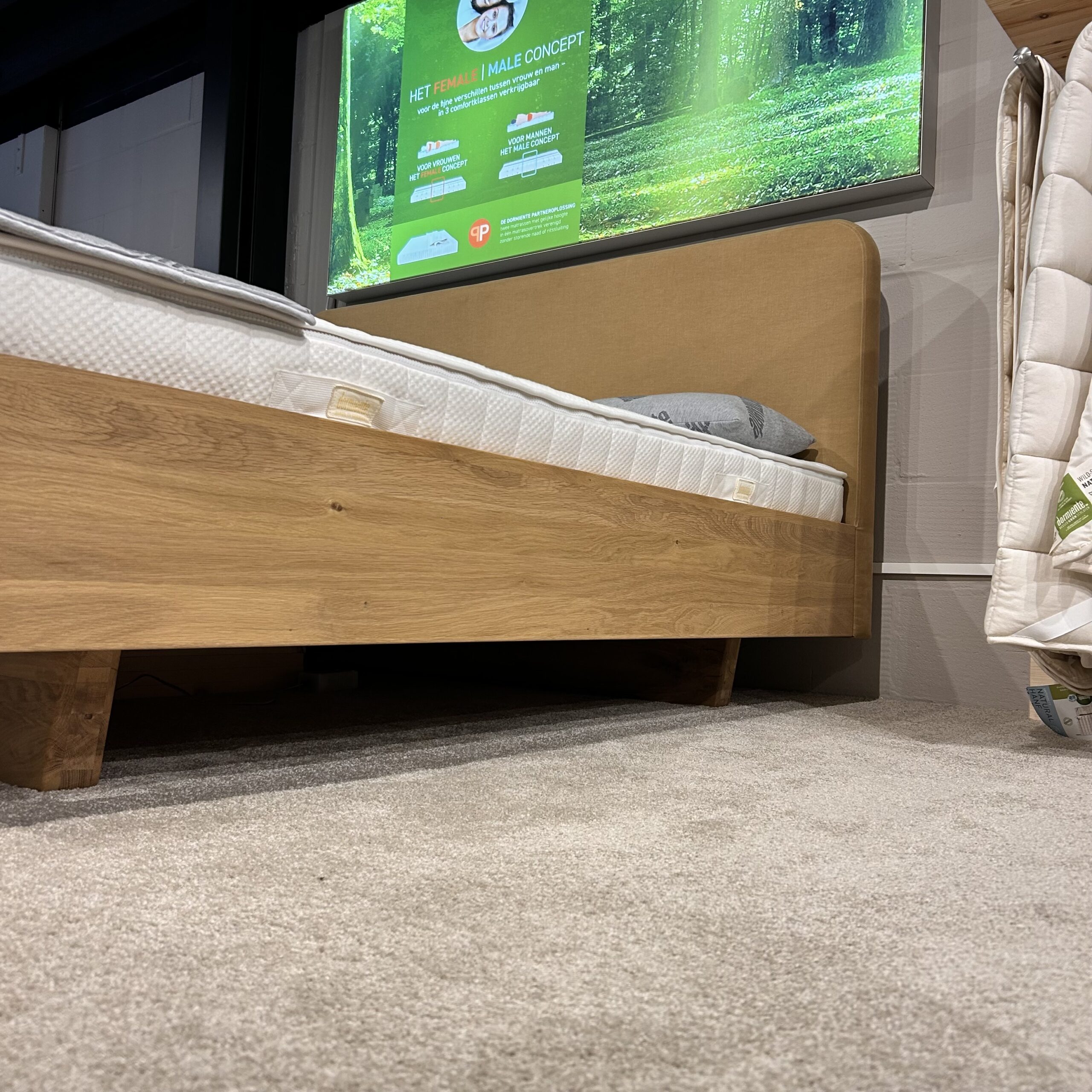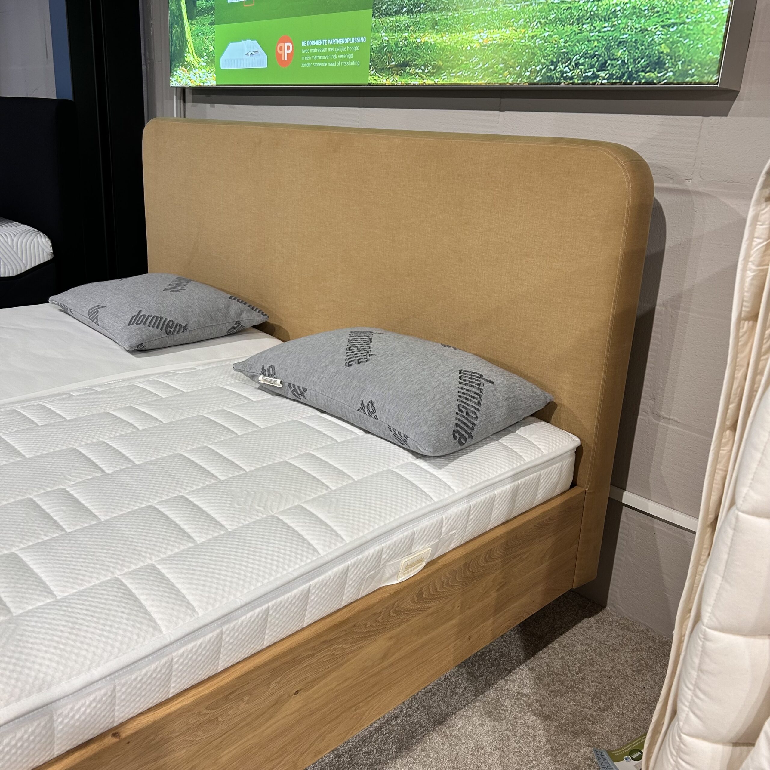 Massief houten bed Clia 3 van Dormiente met een gestoffeerd hoofdbord