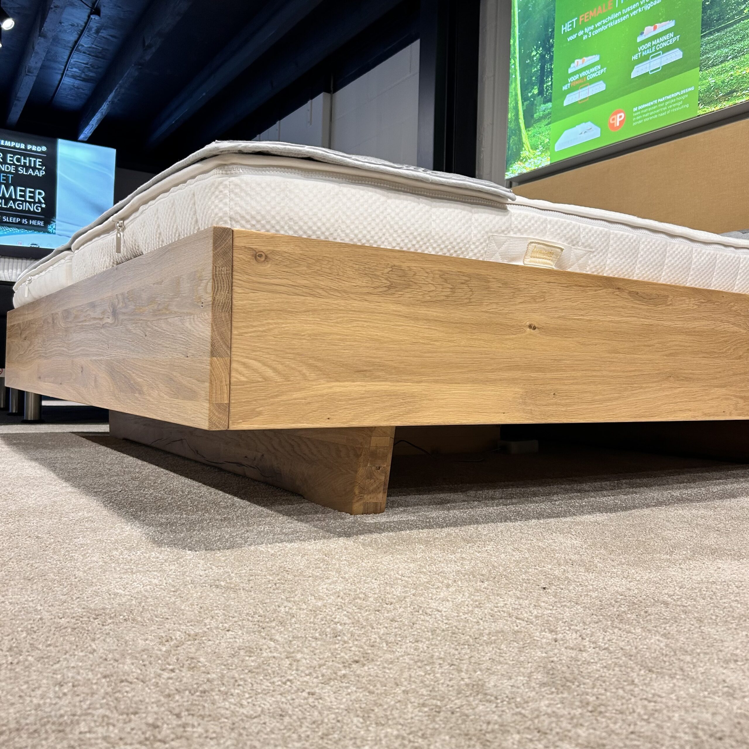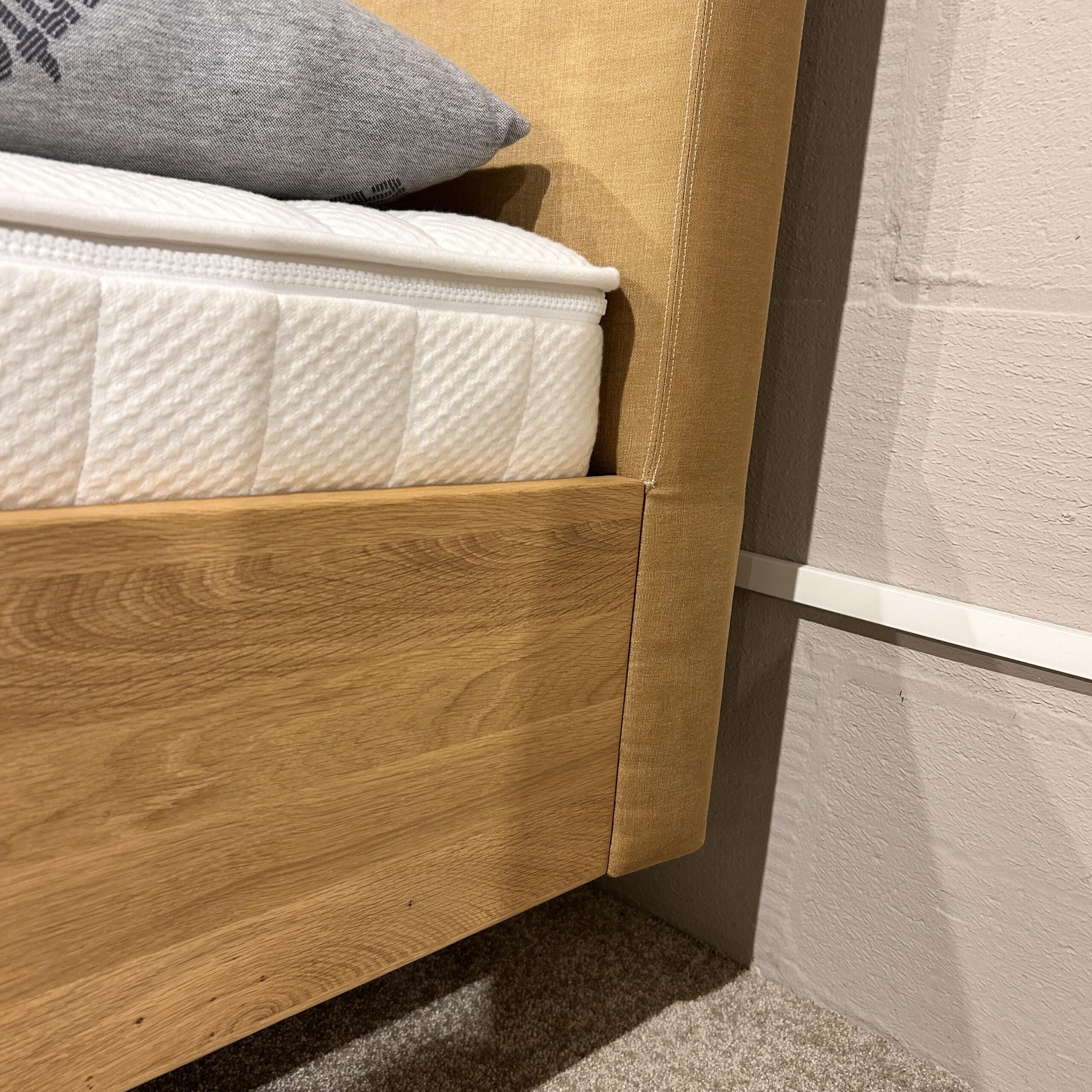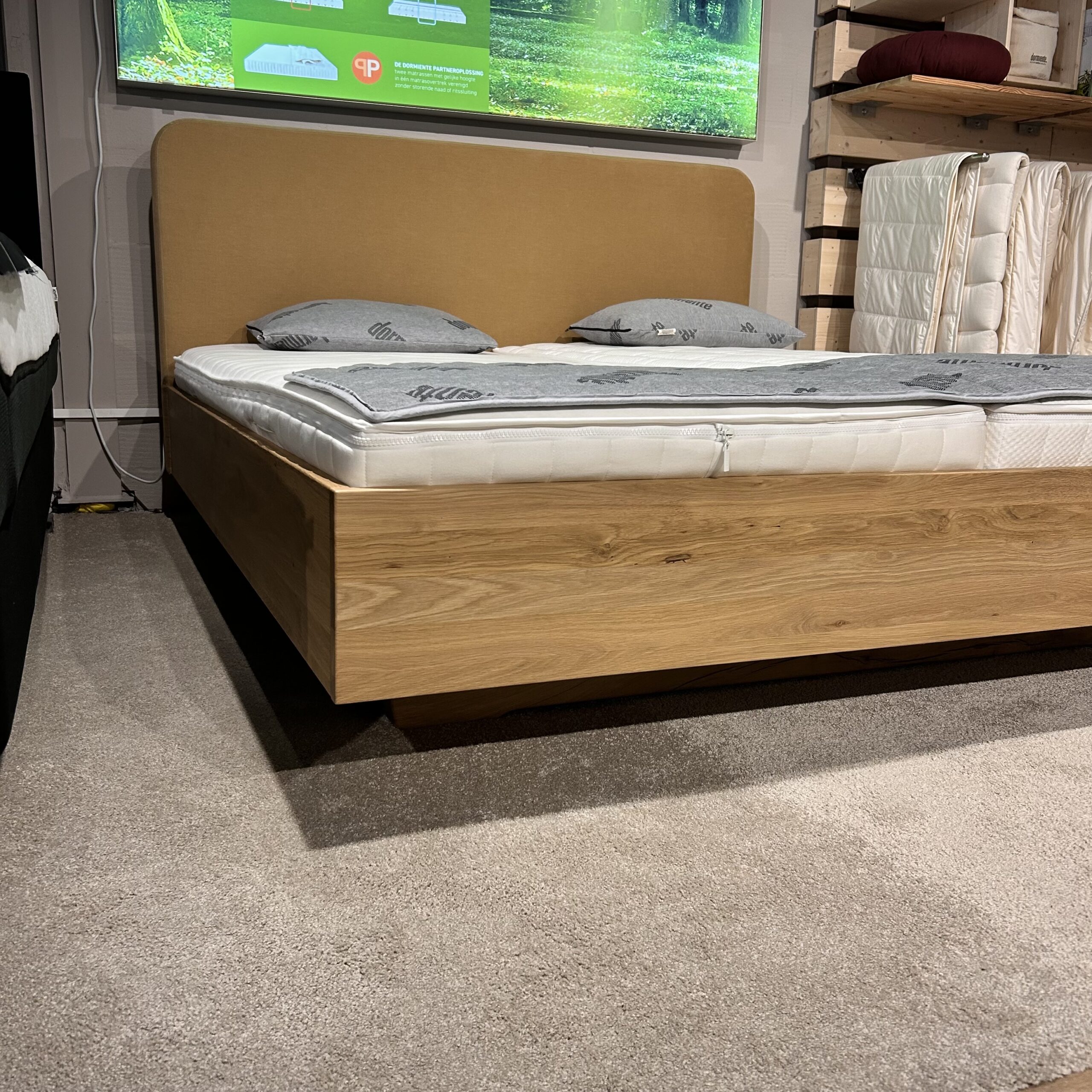 Massief houten bed Clia 3 van Dormiente met een gestoffeerd hoofdbord
