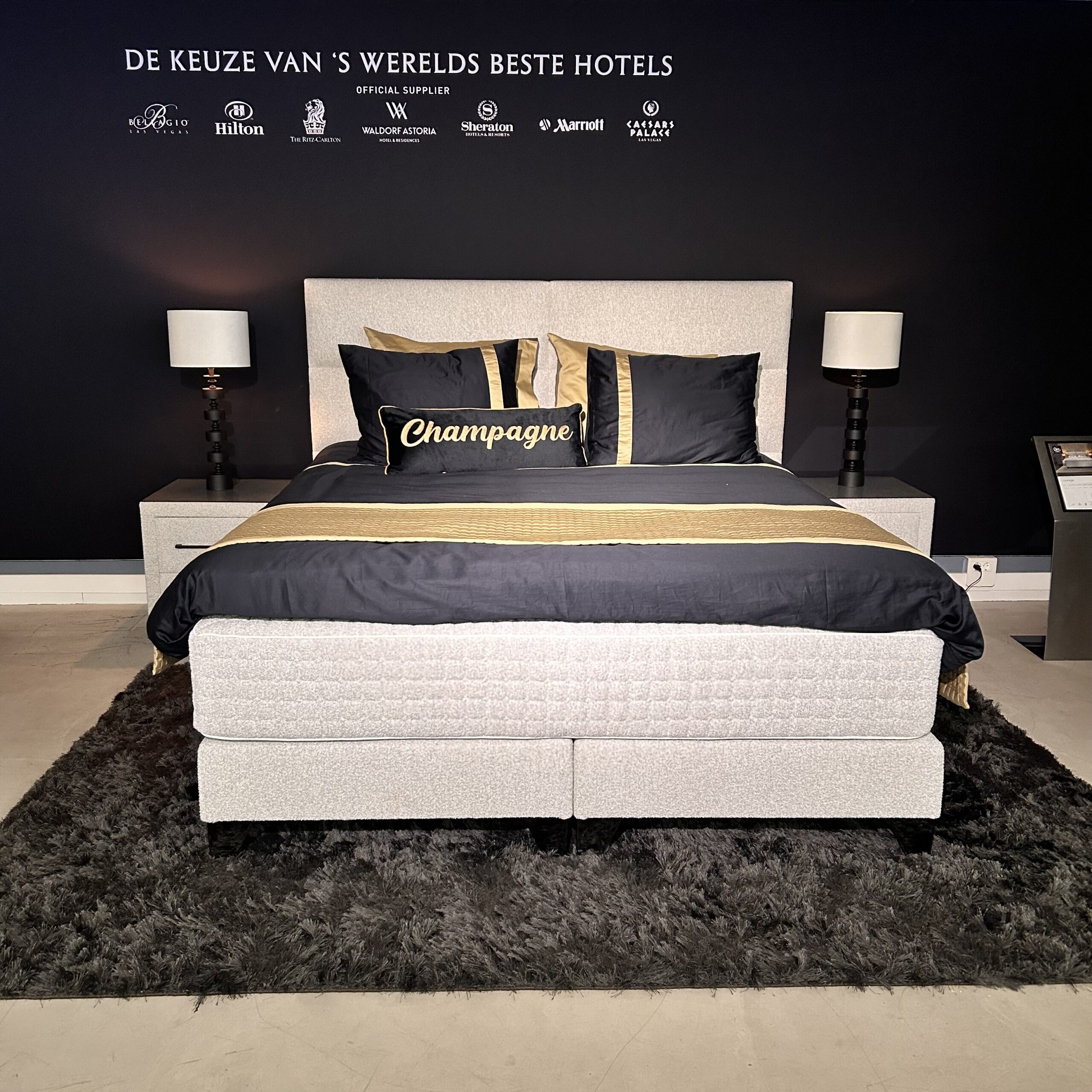 Serta Boxspring vlak 180 x 210 met een traagschuim topper en 2 nachtkastjes.
