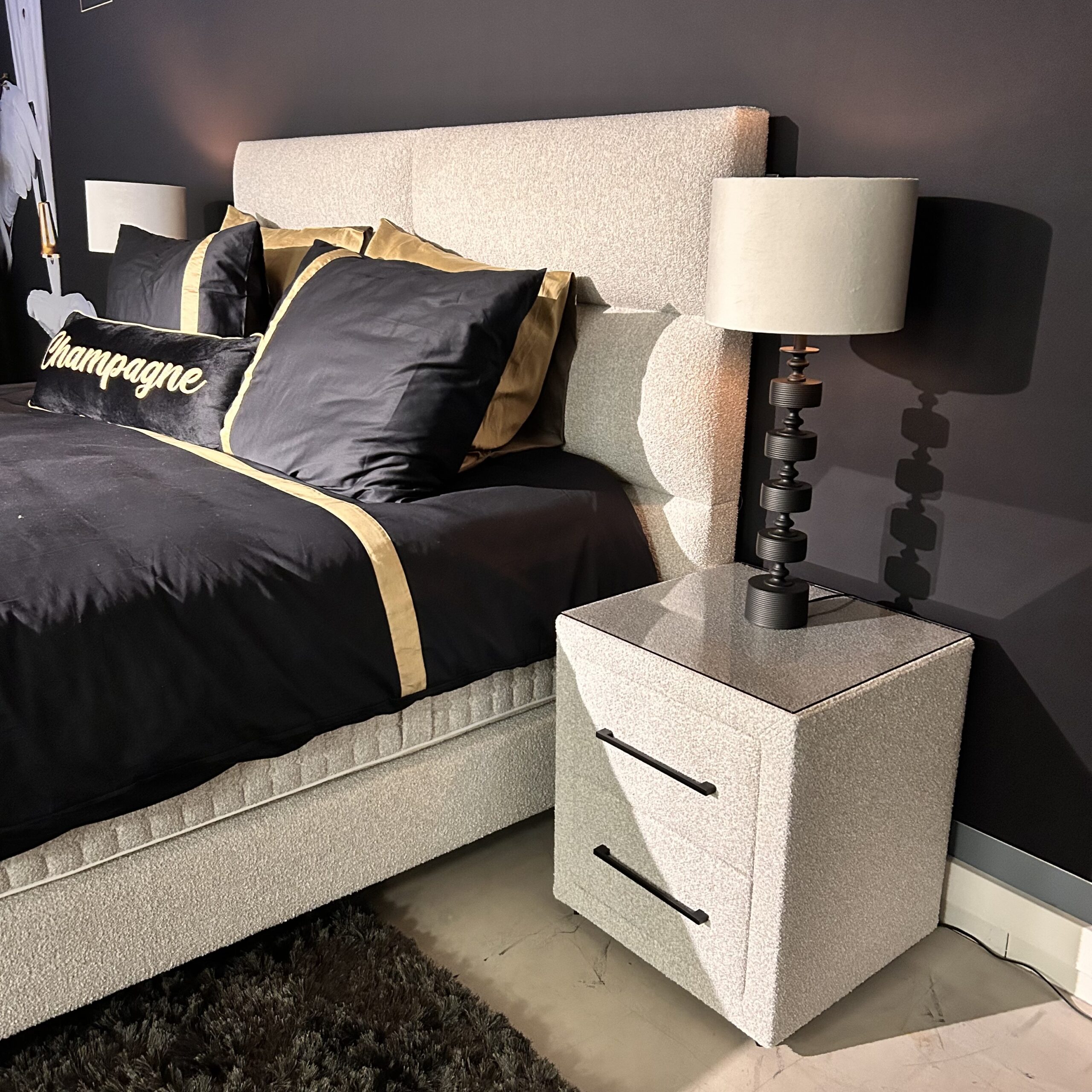 2 x Nachtkastjes met lades en soft close en glazen boven plaat.